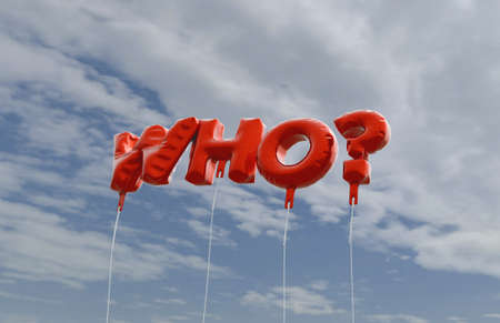 WHO? - red foil balloons on blue sky - 3D rendered royalty free stock picture. This image can be used for an online website banner ad or a print postcard.