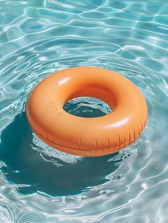 Close up of an orange inflatable ring floating on pool water. Colorful Summer Wallpapers