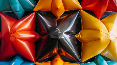 A set of inflatable geometric shapes arranged in a symmetrical and mesmerizing pattern