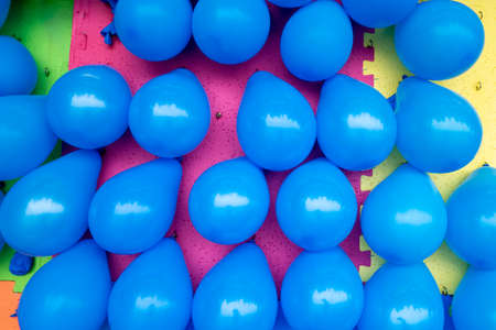 Multi-colored designer background. Many colorful balls for fun and jumping on kids playground. Close-up. Background for children's holiday. Children's birthday