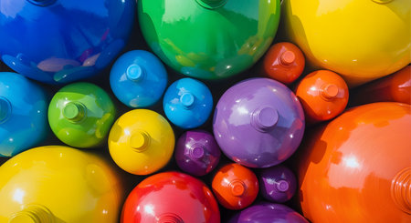A captivating abstract composition of vividly colored flying spheres set against a transparent backdrop. The dynamic arrangement offers vibrant visual appeal, ideal for artistic and