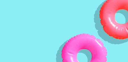 Playful arrangement of colorful poolside floats vivid colors detailed texture