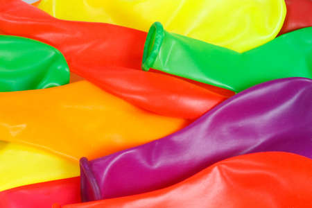 Multi-colored not inflated balloons red, yellow, blue, green lie diagonally on a blue background