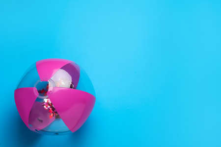 Colorful of small balls floating in inflatable pool. Vacation background. Sunny day at the pool