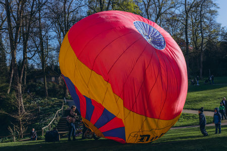 Close up of hot air balloon getting prepared for flight