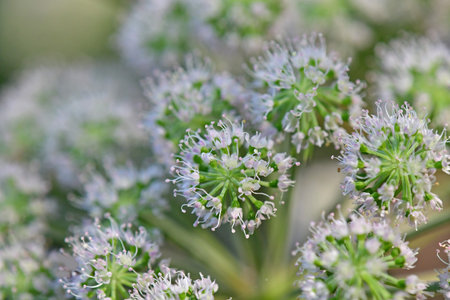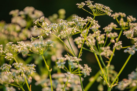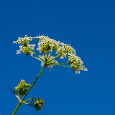 Flowers of water Hemlock (Conium maculatum) growing near the river