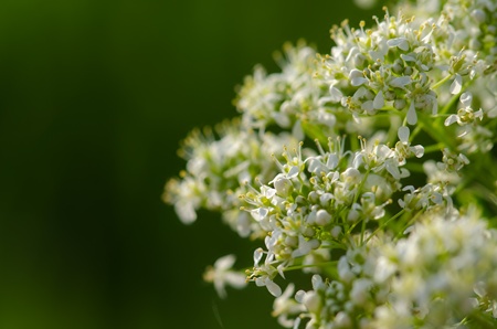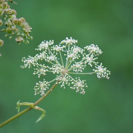 Stem of Cow Parsley flower bush against green background shallow depth of field 2019