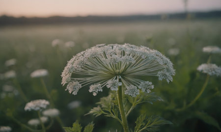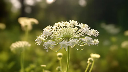 Queen Annes Lace flower beautifully bloomed with natural background. Created by Generative AI.