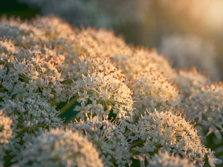 Hogweed poisonous plant flowering weed growing in an abandoned field. horizontal photo