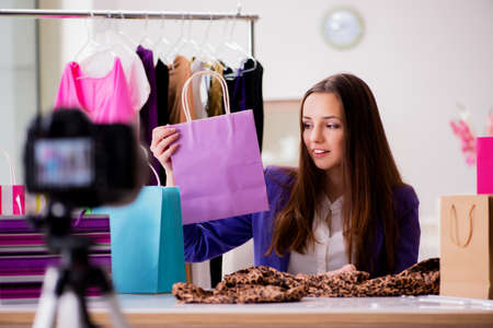 Fashion blogger recording video for blog