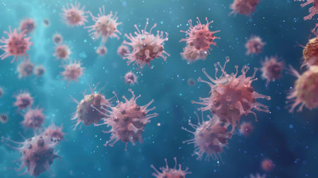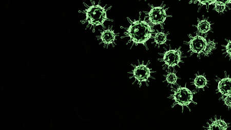 3D illustration. Coronavirus outbreak infecting respiratory system. Influenza type Covid 19 virus background as dangerous flu. Pandemic medical health risk concept with disease cells.