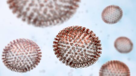Virus infection 3D medical illustration. Microscopic view of floating pathogen respiratory influenza virus cells. Dangerous asian virus, pandemic risk background