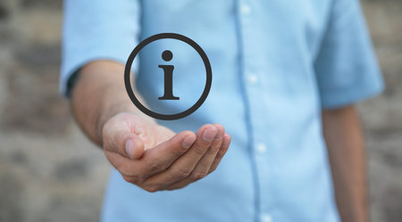 Info letter on white block cubes on wooden table over blue sky with white clouds, Business customer service and support concept