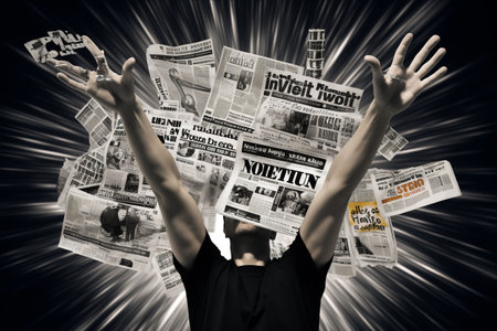 Overwhelming information data explode out of head of young human brain, too much media, too much information, maximalism, news, social media addiction. Generative AI image weber.