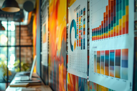 An AI generated illustration of project management graphs charts paper