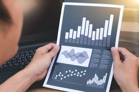 business statistics success concept : businessman analytics financial accounting market chart and graph line ,selective focus.