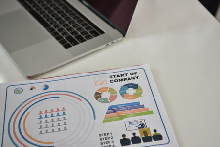 Financial report and laptop on business desk