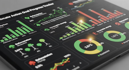 Monthly percentage bar chart showing financial comparison of 2026 budget versus actual performance data displayed on digital screen. Results tracking.