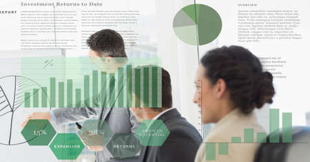 Conceptual vision of business people in corporate staff meeting . Concept of digital technology for marketing data analysis and investment decision making .