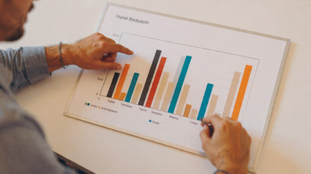 A person holds a notepad filled with colorful graphs and charts, ideal for illustrating data analysis trends and insights for business or research.
