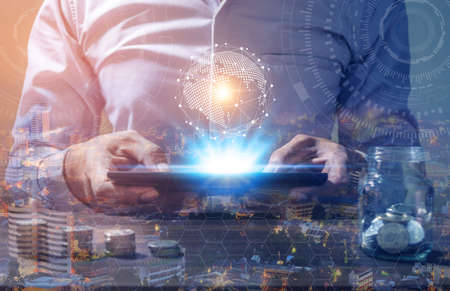 Double Exposure, Online Banking Savings Concept, Online Investment Savings, Online Stock Investors, Internet Financial Transactions, Save Monney for Investors Using Internet to Trade Stocks or Trade Fund