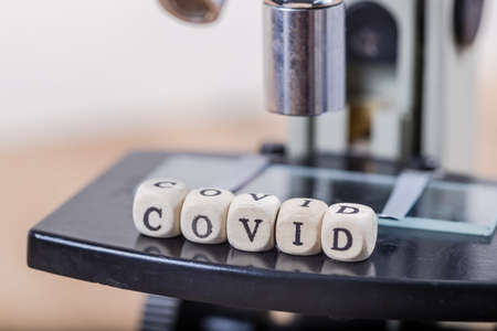 COVID word written on wood block. what is coronavirus text on wooden table for your desing