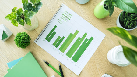 A visually engaging workspace featuring colorful charts and graphs alongside planters, ideal for presentations, data analysis, and professional brainstorming sessions.