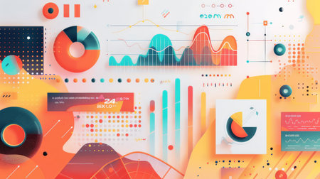 Vibrant digital dashboard with various financial graphs and colorful metrics. Perfect for business presentations and strategic planning.