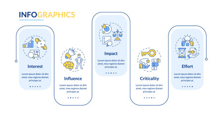 Stakeholder analysis rectangle infographic vector. Project organization, statistical growth. Data visualization with 5 steps. Editable rectangular options chart. Lato-Bold, Regular fonts used