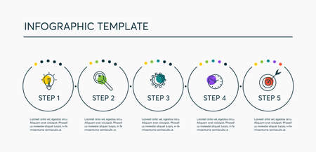 Timeline Infographics colored circles with lines design, Data information business and analytics theme Vector illustration