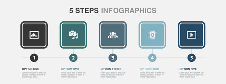 illustration, media, social content, technology, video icons Infographic design template. Creative concept with 5 steps