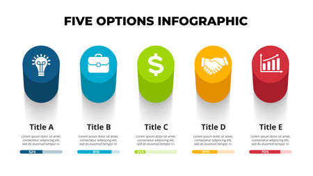3D Vector Perspective Infographic. Presentation slide template. 5 step options. Chart concept. Colorful creative info graphic design.