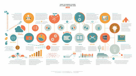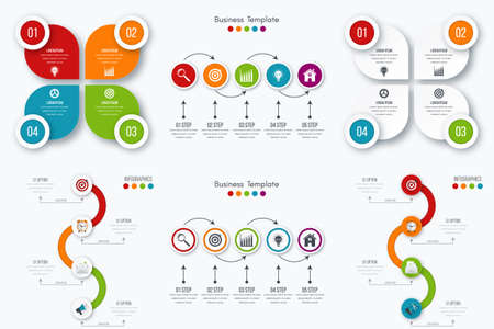 Timeline Infographics colored circles with lines design, Data information business and analytics theme Vector illustration