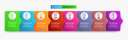 Business infographics design template with 8 steps or options, can be used for workflow layout, annual report, web design, presentation