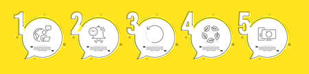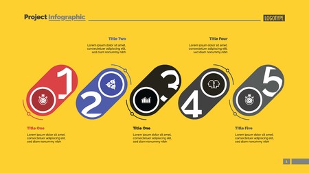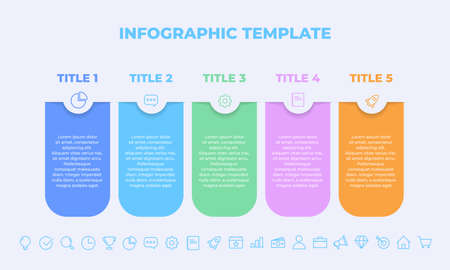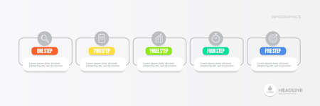 5 steps business infographic template. Set, collection of illustrations. Workflow. Presentation elements. Research progress. Layout with numbers and text. Simple flat image. Vector image.