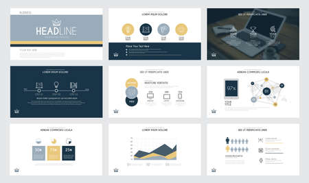 Business presentation slides templates from infographic elements. Can be used for presentation, flyer and leaflet, brochure, corporate report, marketing, advertising, annual report, banner, booklet.