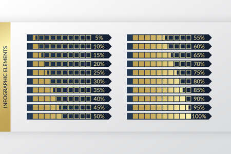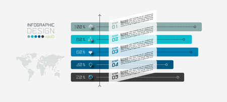 Percentage graphs are used to show the results of work, studies, and predictions 5 steps by vector infographic.