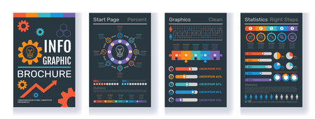 Infographic brochure. Information chart graph. Statistic report diagram elements. Process bar timeline. Data infochart design template. Percent numbers circle. Vector tidy business info posters set