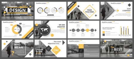 Presentation template. Yellow elements for slide presentations on a white background. Use also as a flyer, brochure, corporate report, marketing, advertising, annual report, banner