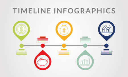 Timeline Infographics with money icons design, Data information business and analytics theme Vector illustration