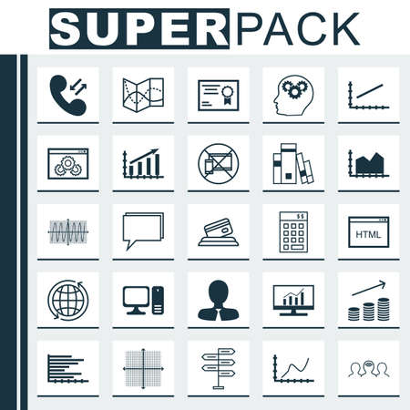 Set Of 25 Universal Icons On Square Diagram, Personal Skills, Desktop Computer And More Topics. Vector Icon Set Including Sequence Graphics, Computer, Human Mind Icons.
