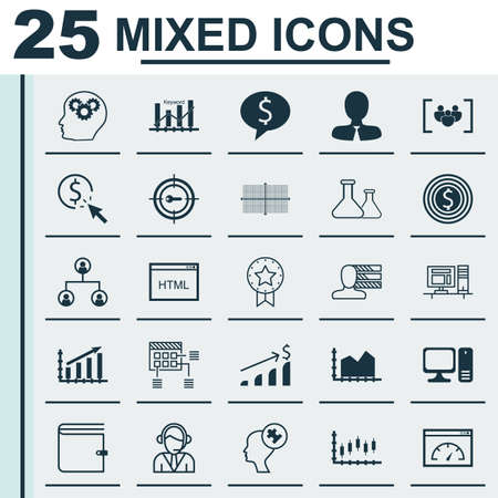 Set Of 25 Universal Icons On Coaching, Coding, Manager And More Topics. Vector Icon Set Including Investment, Coding, Bars Chart Icons.
