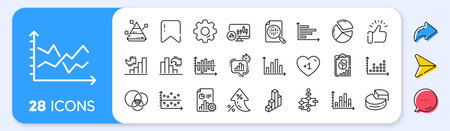 Charts and Diagrams line icons. Interest rate, AI generate, Inflation icons. Report, 3D Chart, Block diagram and Dot Plot graph linear icons. Trend, Pyramid and Pie chart report symbols. Vector
