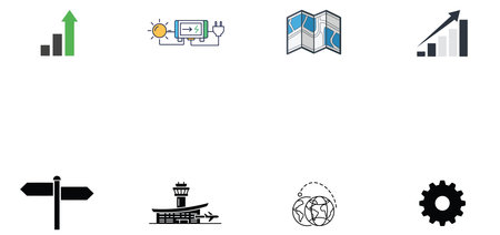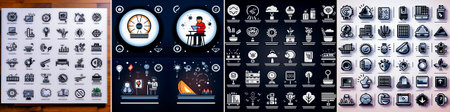 Includes various icons such as business people, charts, finance and technology. Ideal for use in presentations, websites and marketing materials.