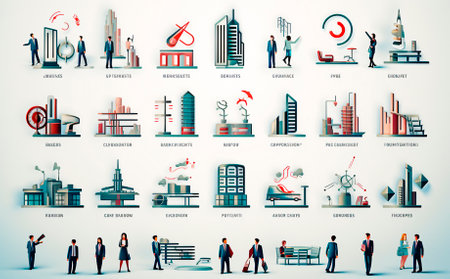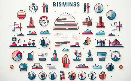 The icons include various business related images such as portfolios and office buildings. Ideal for use in presentations, documents and websites. Easily customizable and integrated into your projects