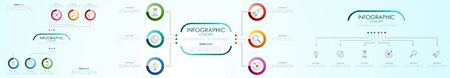 Set line Mind map infographic, Financial growth decrease and icon. Vector.