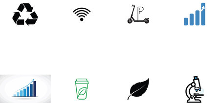 Ecology icon set. Collection includes icons as eco-friendly transport, smart scooter, coffee cup, leaf and more.