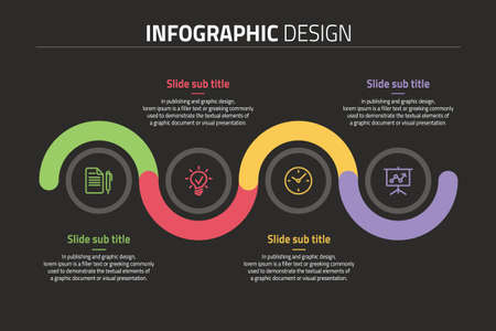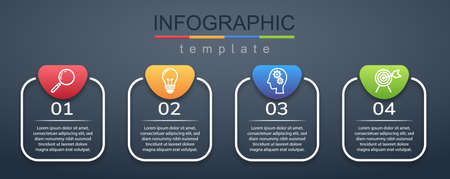 Business data visualization. Time line Process chart with 4 steps, labels. Abstract elements of graph, diagram options, parts or processes.