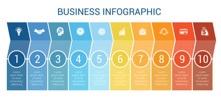 Business Infographic design for Timeline ten position can be used for workflow, banner, diagram, web design, area chart.