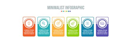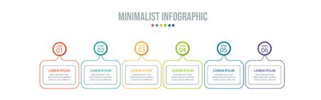 Business vector infographics with six line circles and labels. Timeline visualization with 6 steps for diagram, flowchart, banner, presentations, web, content, levels, chart, graph